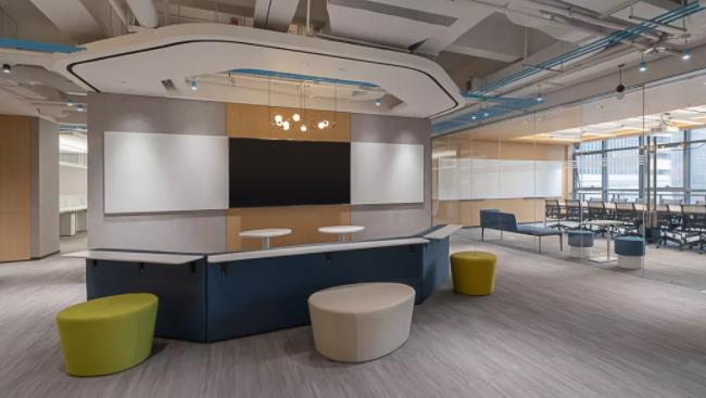 在當(dāng)代辦公方式中,工作的場(chǎng)景其實(shí)是在模糊化和多變的。會(huì)議室既可以用來(lái)承接內(nèi)部開(kāi)會(huì)功能,又能接待訪客;休閑區(qū)不僅僅滿足員工休閑需求,同時(shí)又是滿足員工協(xié)同、靈感溝通的重要場(chǎng)景。
